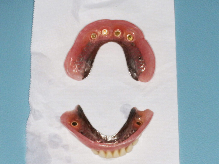 義歯の裏側です。穴が空いてる場所に磁石を埋め込んでます。